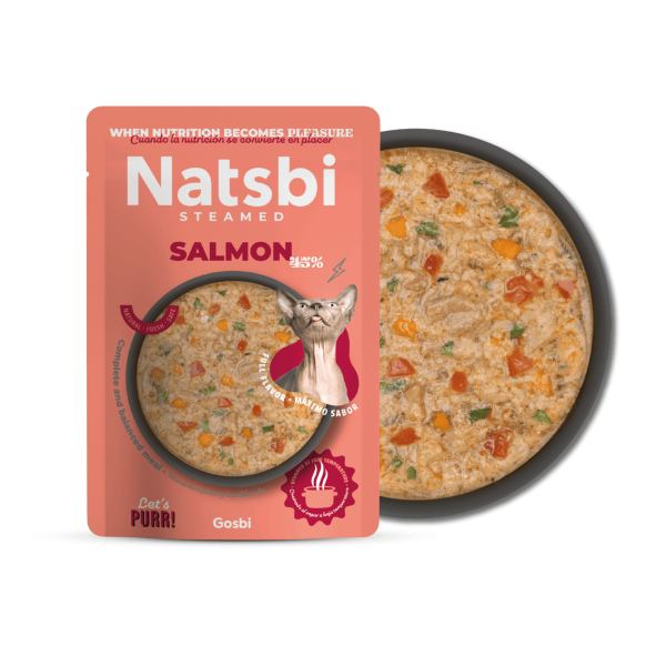 מזון מלא טבעי המבוסס 100% סלמון טרי בבישול עדין, עשיר בחומצות שומן אומגה 3 ו־6 לתמיכה במערכת העור, הפרווה והחיסון. אידיאלי לחתולים בררנים או עם רגישות לעוף.