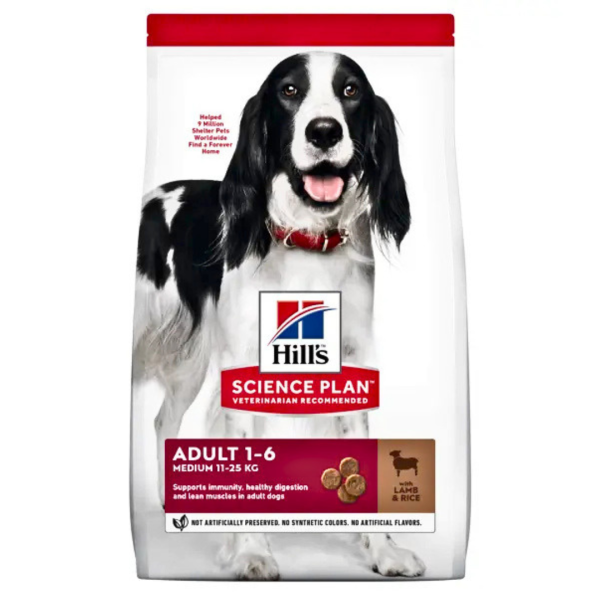 מזון יבש Hill's Science Plan Adult פותח במיוחד לכלבים בוגרים מגזעים בינוניים (11–25 ק"ג) בגילאי 1–6 שנים.